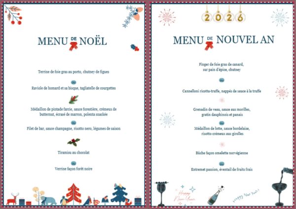 Découvrez nos Menu des Fêtes